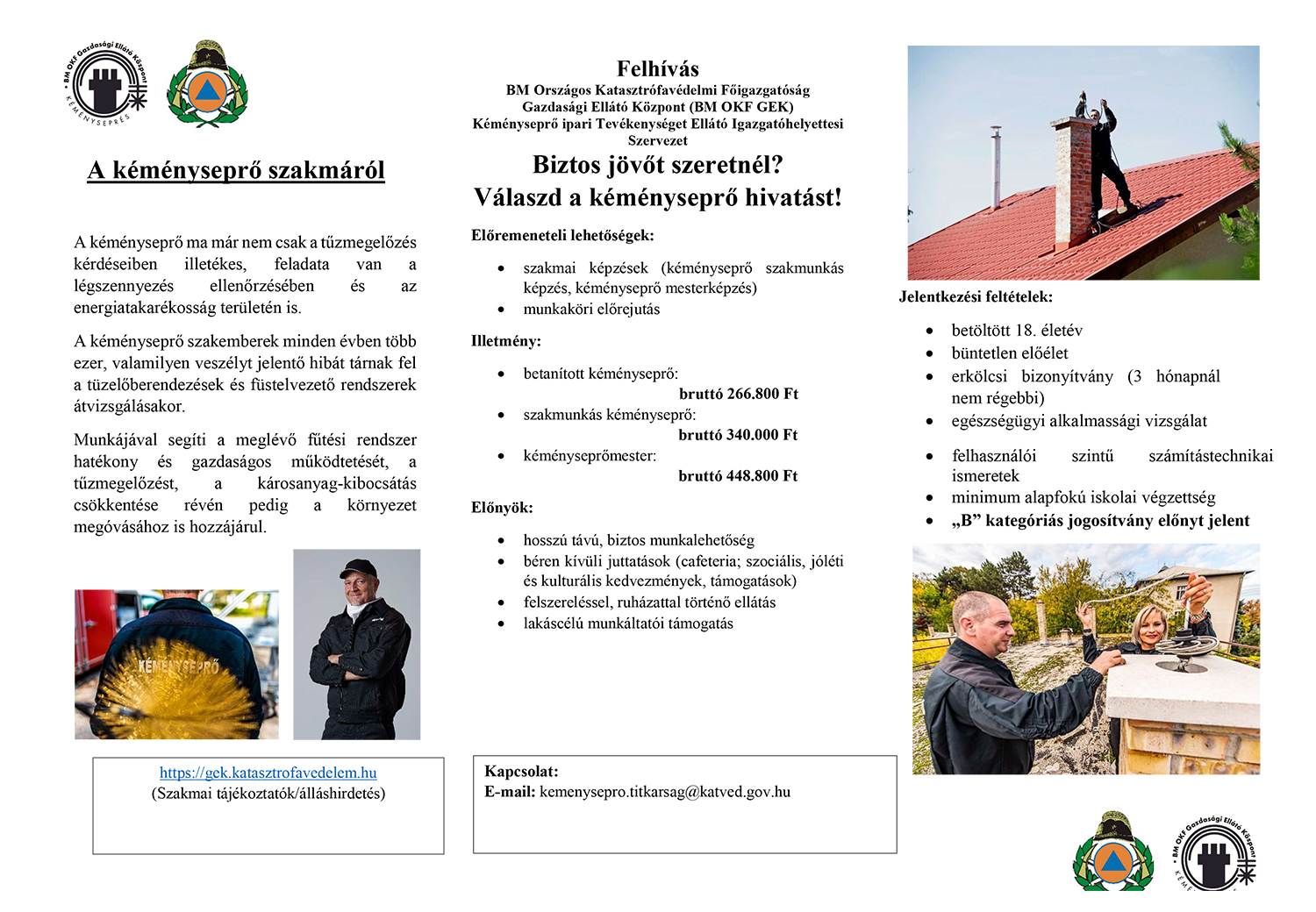 Folytatódik a BM Országos Katasztrófavédelmi Főigazgatóság Gazdasági Ellátó Központ kéményseprő hivatást népszerűsítő munkaerős felvételi kampánya. ...