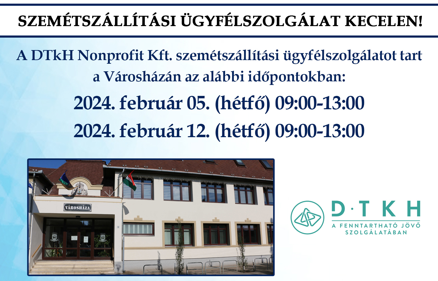 - A DTkH Nonprofit Kft. közleménye a hulladékszállítás rendjéről - 2024
