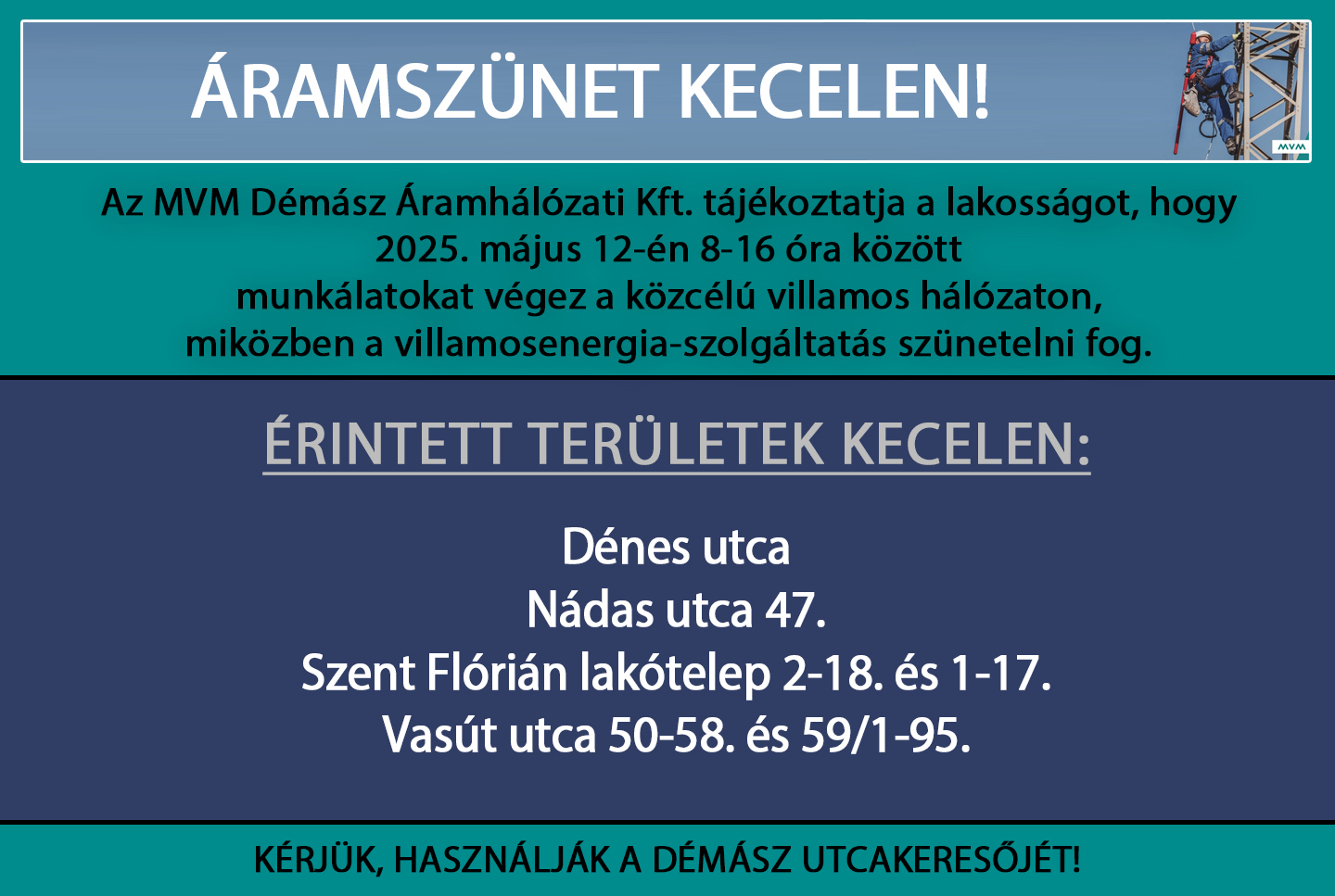 Áramszünet lesz Kecelen! - 2025. május 12.