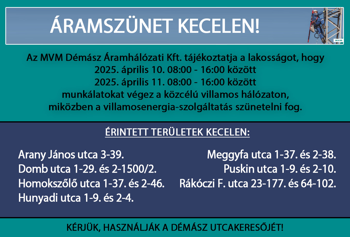 - Áramszünet lesz Kecelen! - 2025. április 2-án és 7-én